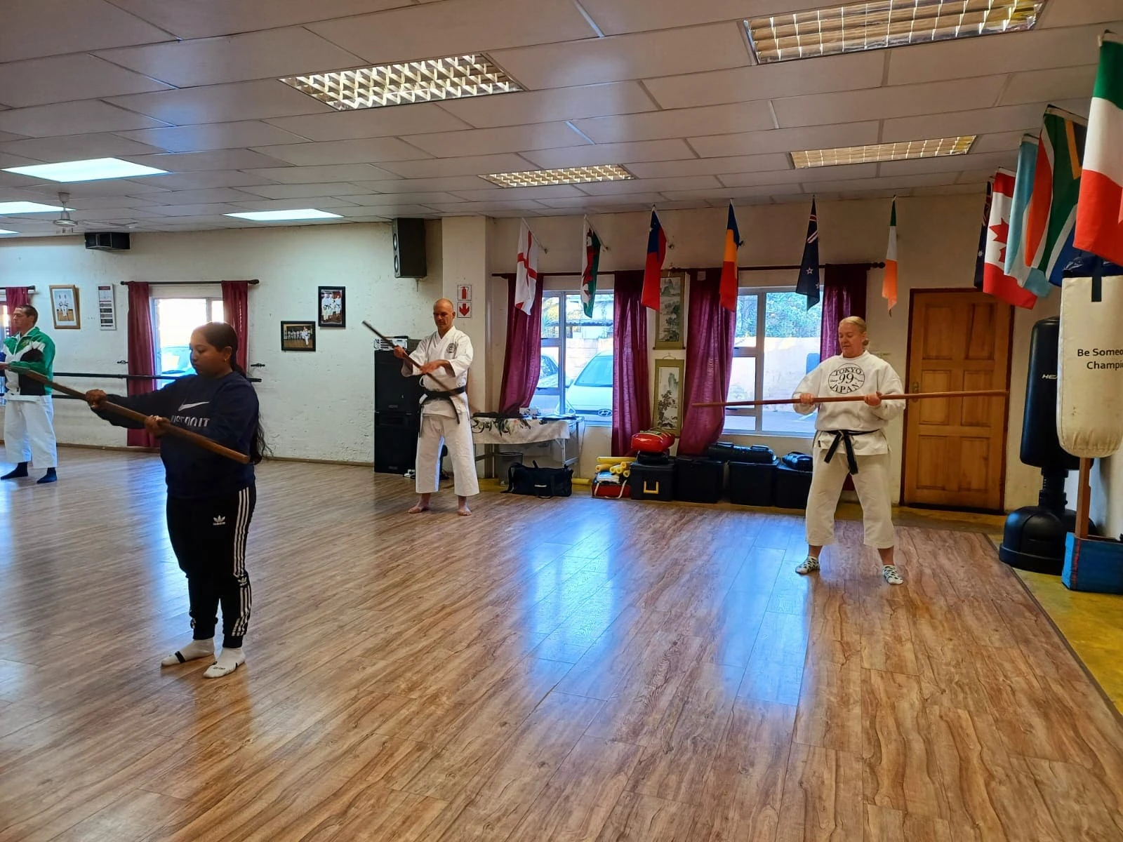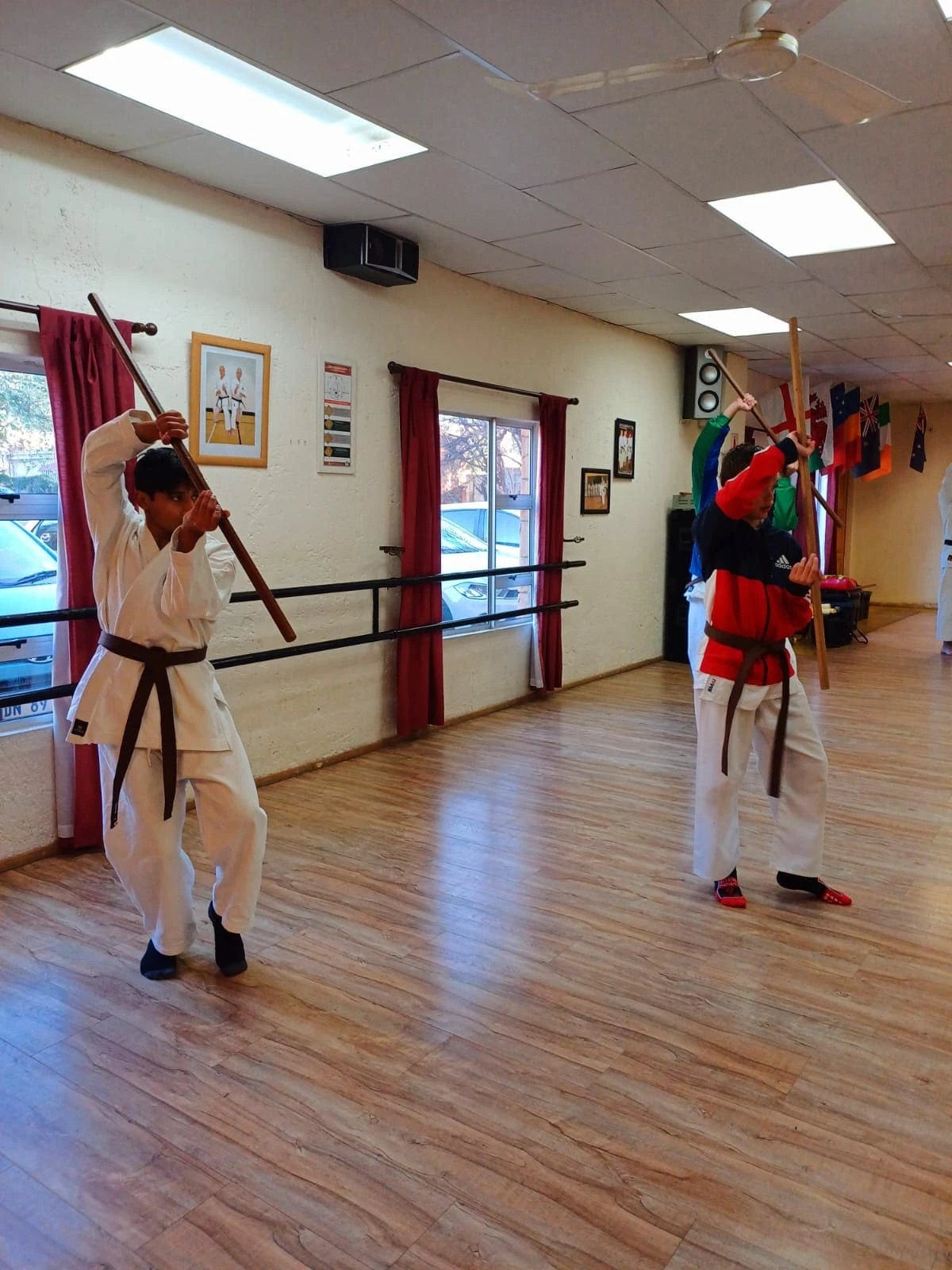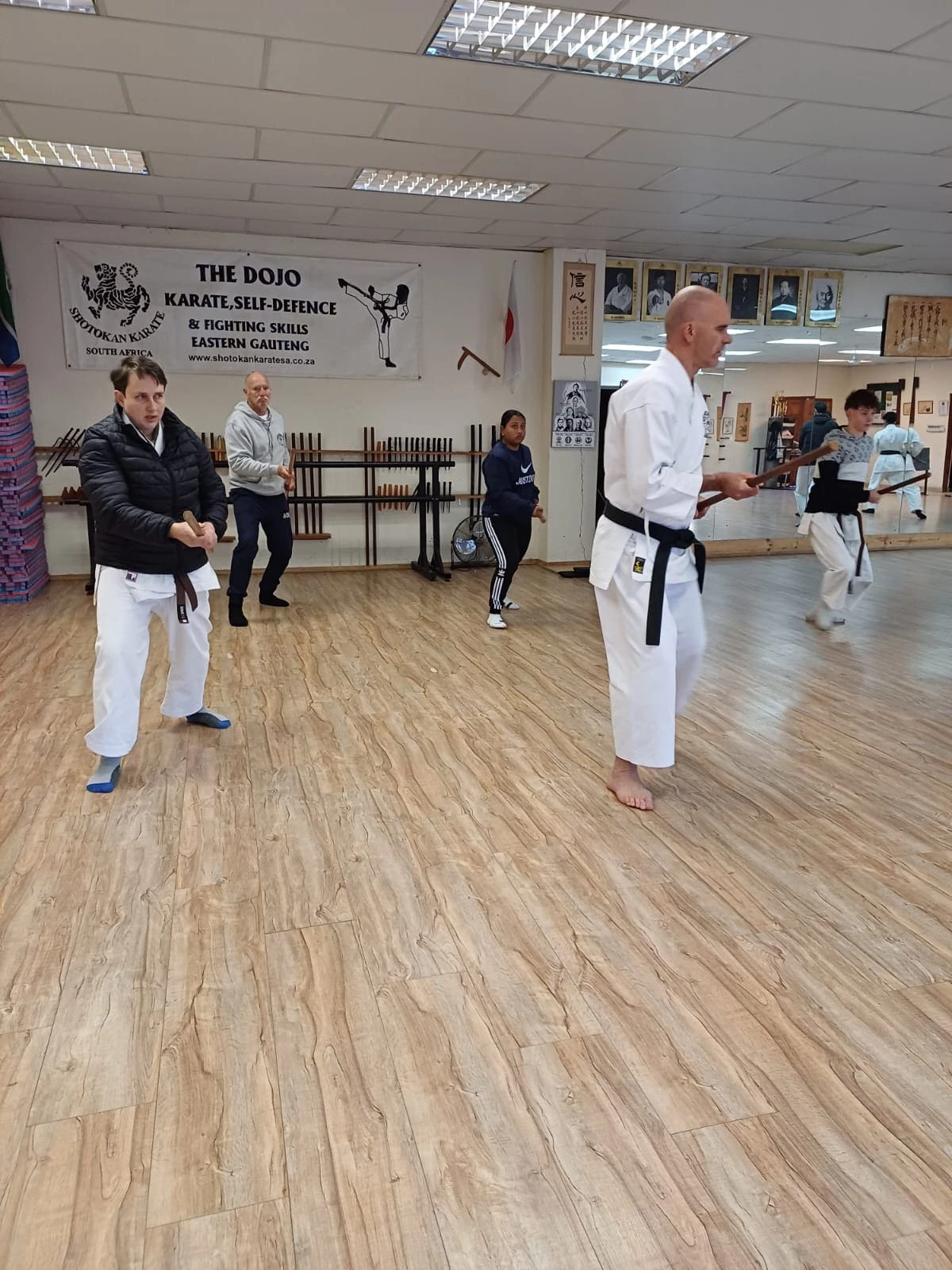 Our Saturday morning Black & Brown Belt training: Warm-ups, techniques & kata demonstrations. Karatekas from Benoni, Boksburg & Witbank clubs training together.